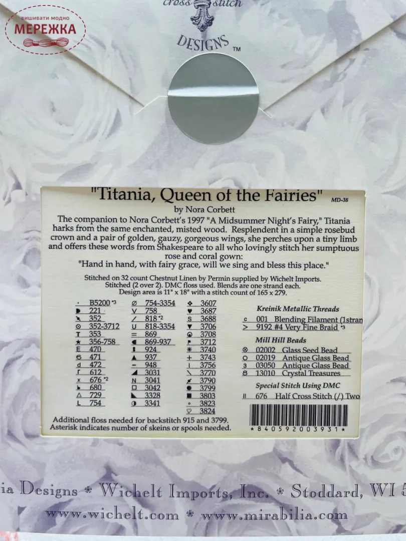 Схема для вишивання Mirabilia Designs Titania, Queen of the Fairies MD38