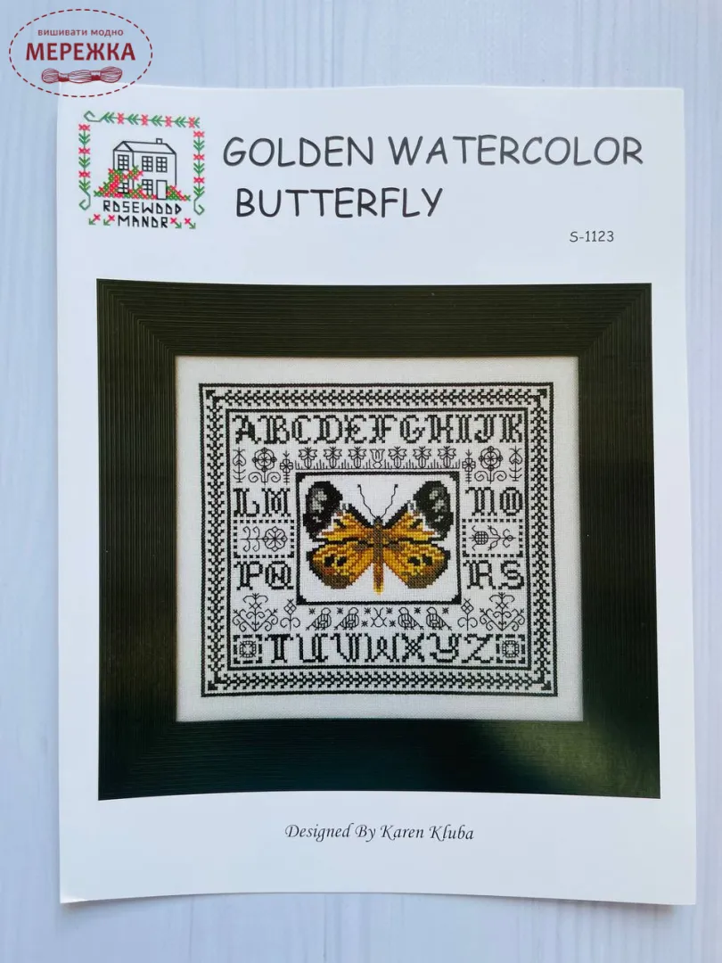 Схема для вишивання від Rosewood Manor "Golden Watercolor Butterfly".