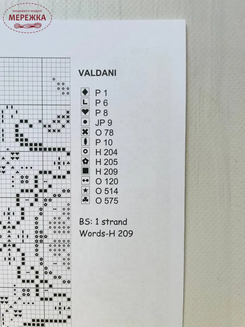 Рекомендовані нитки: Valdani H204 Nostalgic Wine, H205 Ancient Gold, H209 Khaki Black, JP9 Herb Garden, O78 Aged Wine, O120 Story Sky, O514 Wheat Husk, O575 Crispy Leaf, P1 Old Brick, P6 Rusted Orange, P8 Old Rose, P10 Antique Violet.