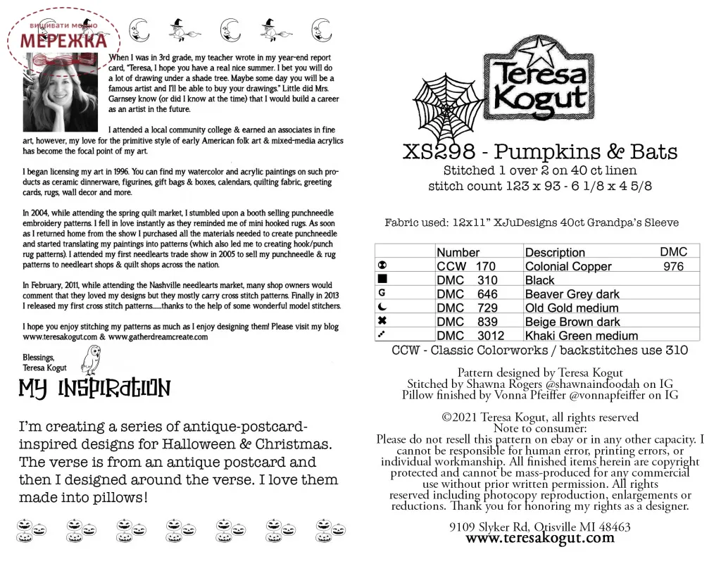 Схема для вишивання від Teresa Kogut "Pumpkins and Bats".