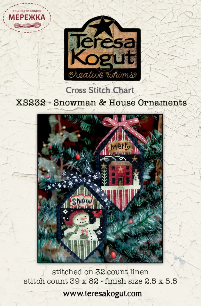 Схема для вишивання Teresa Kogut Snowman and House Ornaments XS232