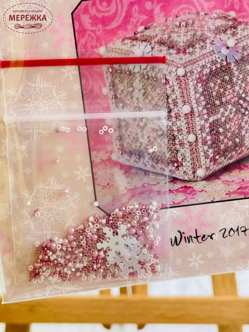 Схема для вишивання та інструкція по збірці куба "Pink Ice Cube".
