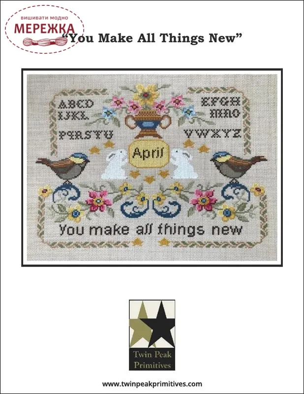 Схема “You Make All Things New” від Twin Peak Primitives, одного із найновіших брендів «Cross Stitch Design», заснованого у середині 2017 року.