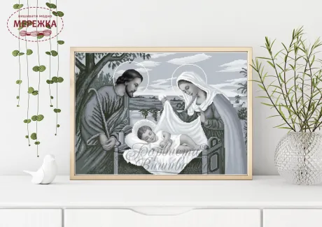 Схема для вишивання бісером на релігійну тематику ТО132 Святе сімейство (чорно-біла) від виробника Барвиста Вишиванка.