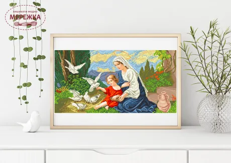 Схема для вишивання бісером БС Солес на регілійну тематику - Богородиця і голуби.