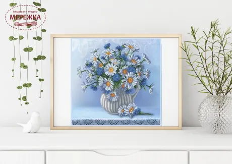 Схема для вишивання бісером ВДВ Ромашки з волошками Т-1344