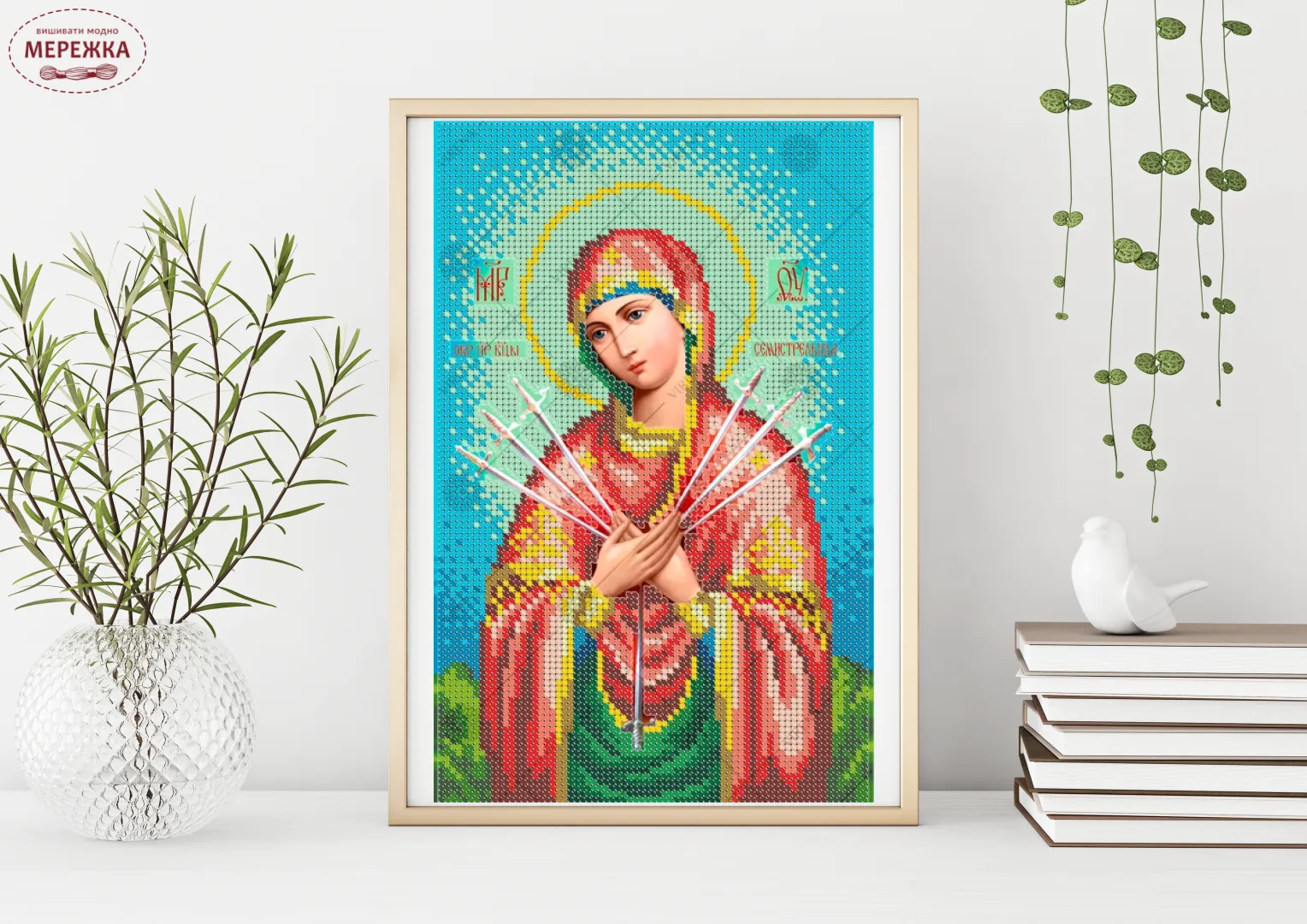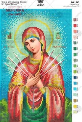 Схема для вишивки бісером формату А4, Богородиця Семистрільна А4Р_545.