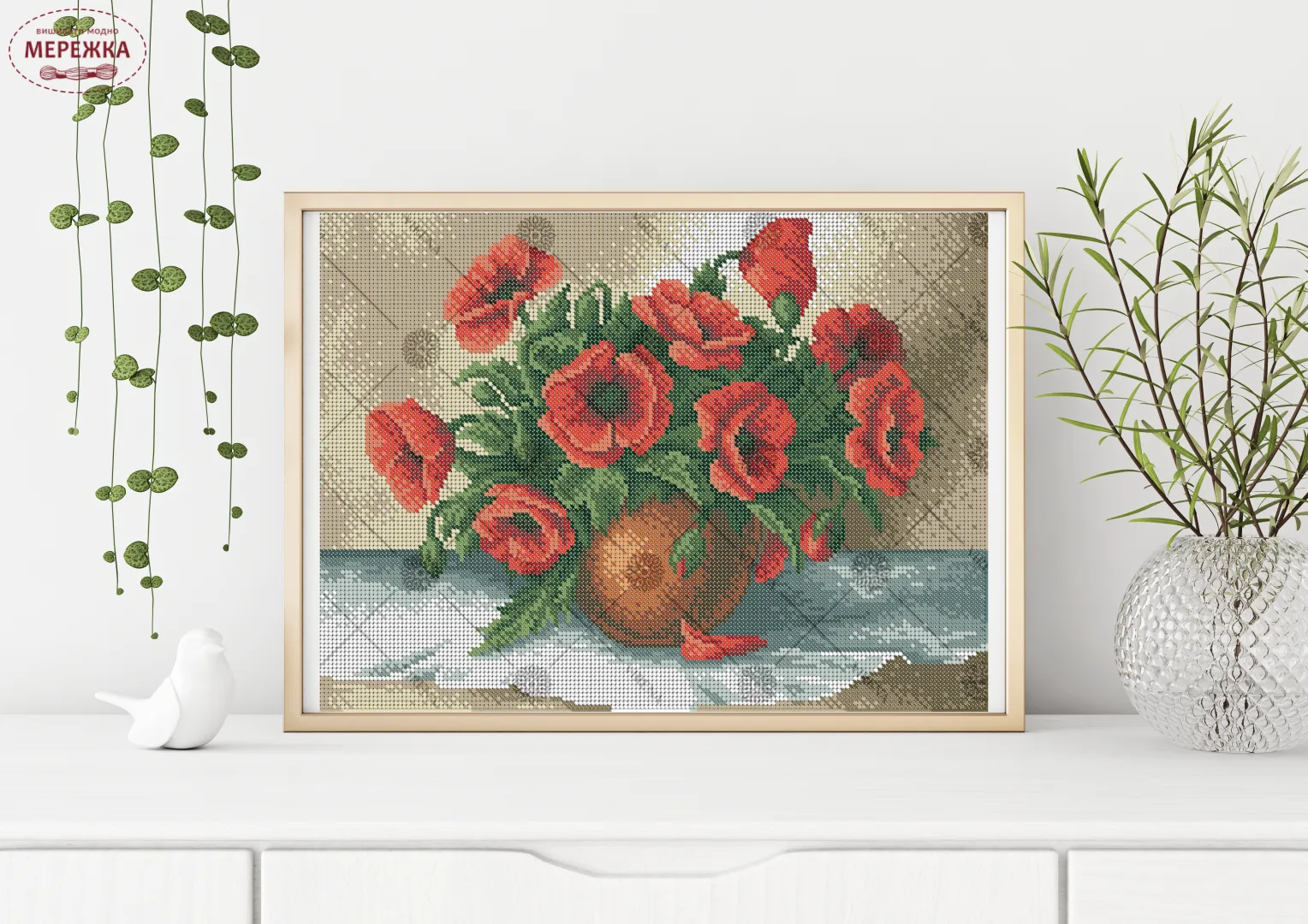 Схема для вишивки бісером формату А3, Горщик маків А3Н_049.