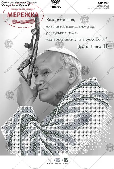 Схема для вишивання бісером VIRENA, Св. Йоан Павло ІІ, А4Р_246