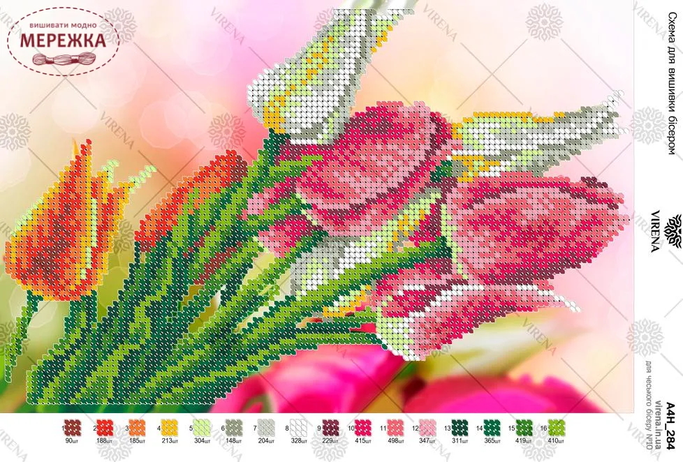 Схема для вишивання бісером VIRENA, Тюльпани А4Н_284