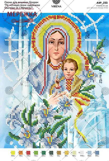Схема для вишивання бісером VIRENA, За мотивами ікони О. Охапкіна "Ніжність" А4Р_233