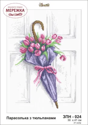 Схема для вишивання бісером Золота Підкова Паасолька з тюльпанами ЗПН-024