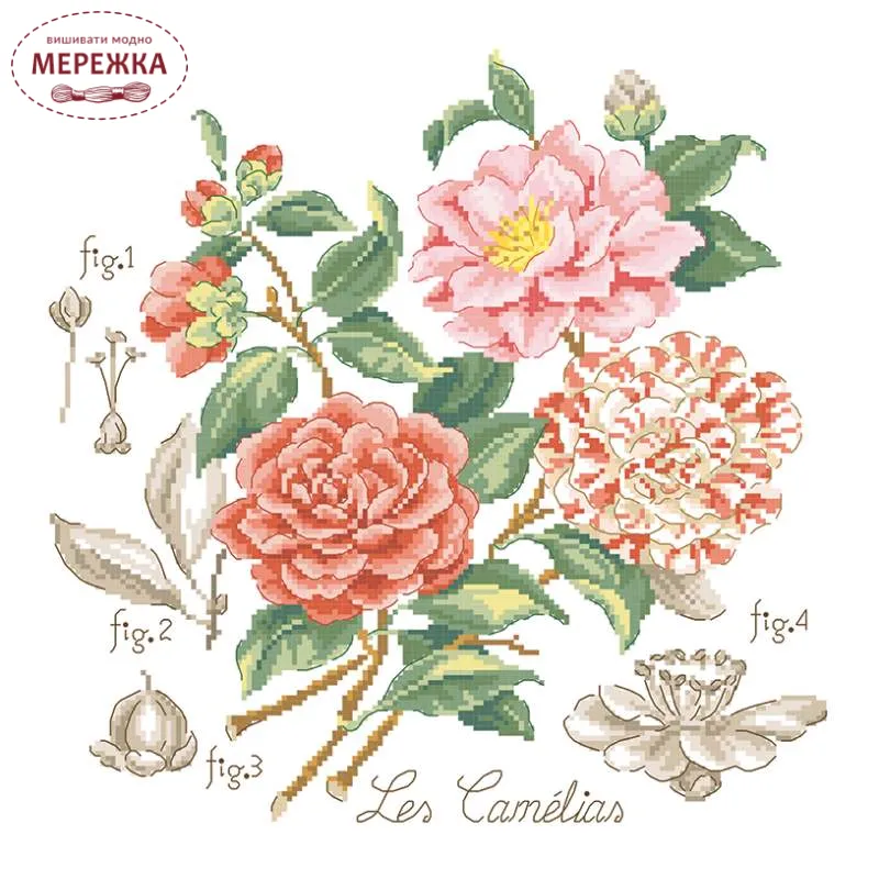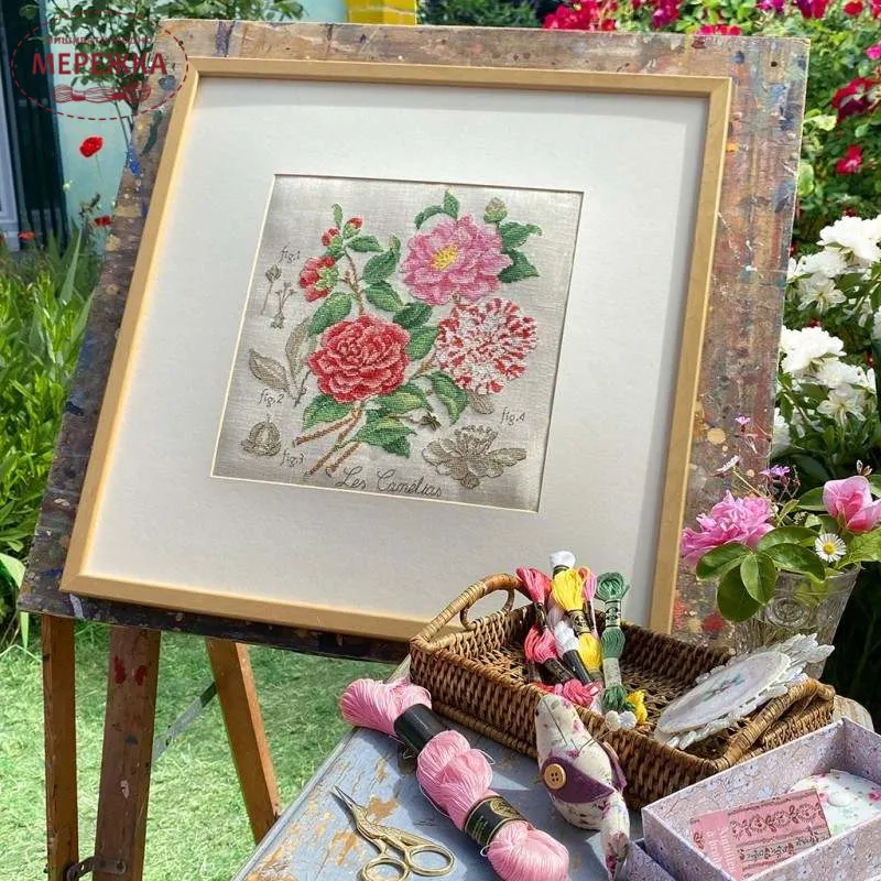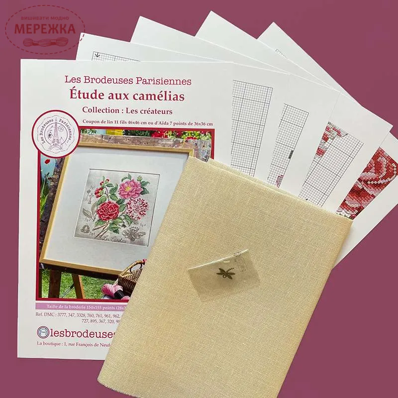 Les Brodeuses Parisiennes Схема Etude aux Camelias+тканина, пришивний шарм