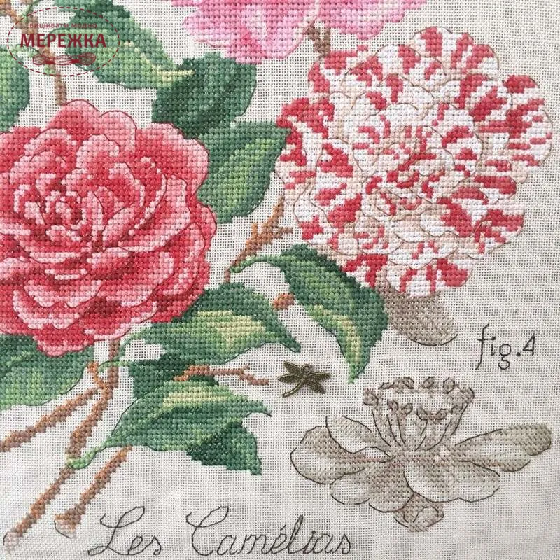 Схема "Etude aux Camelias" +тканина, пришивний шарм від Veronique Enginger для Les Brodeuses Parisiennes.