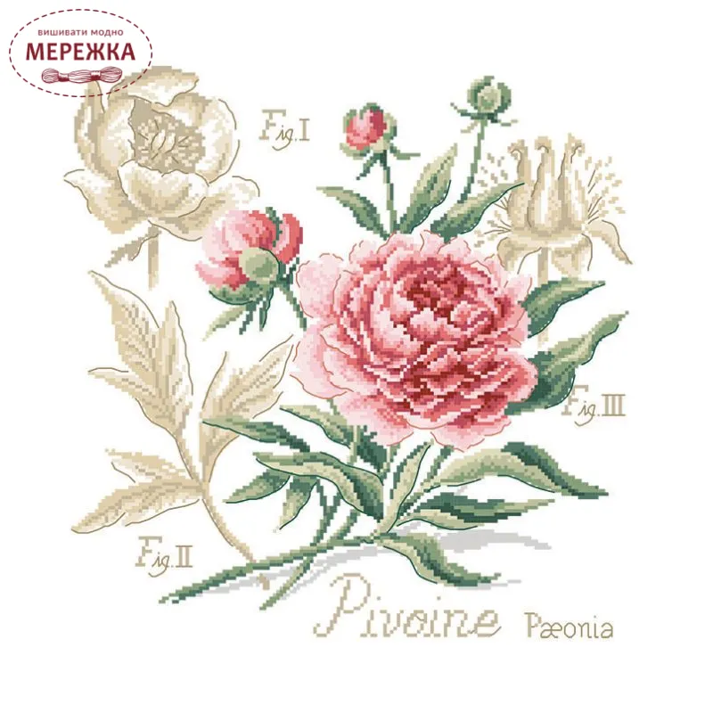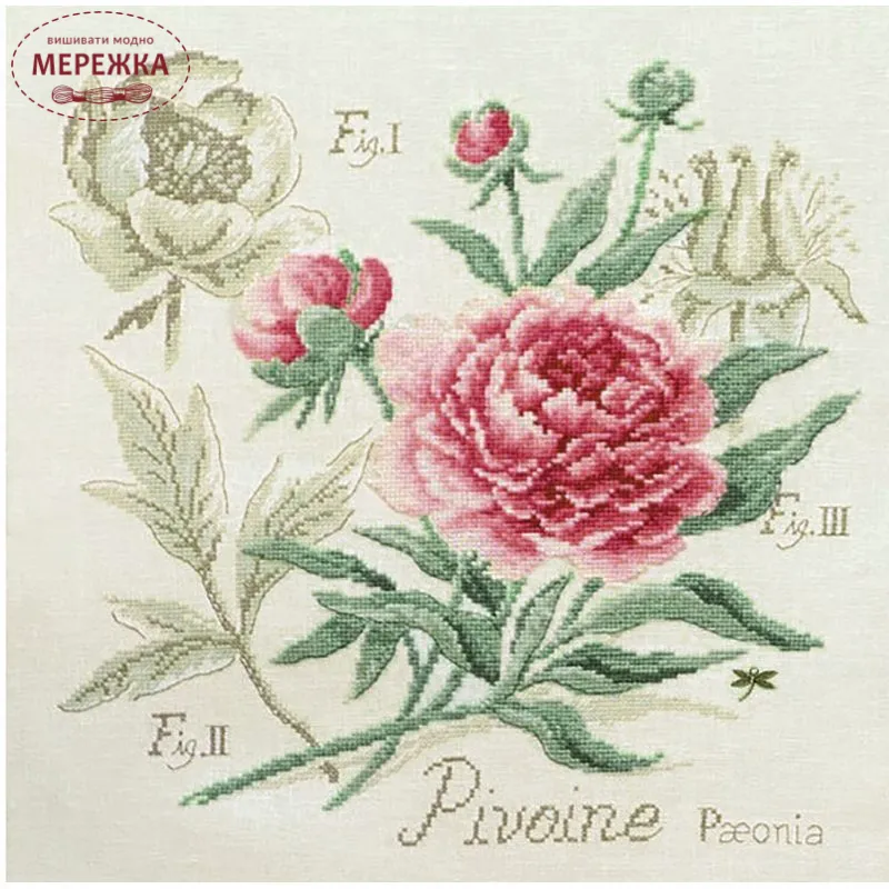 Les Brodeuses Parisiennes Схема Etude a la Pivoine+тканина, пришивний шарм
