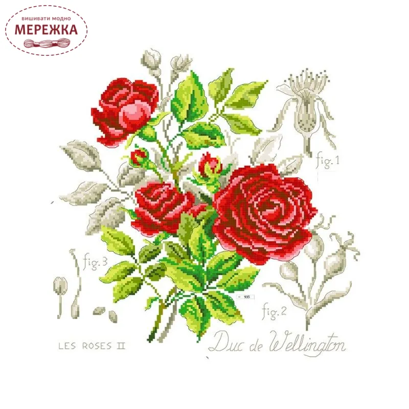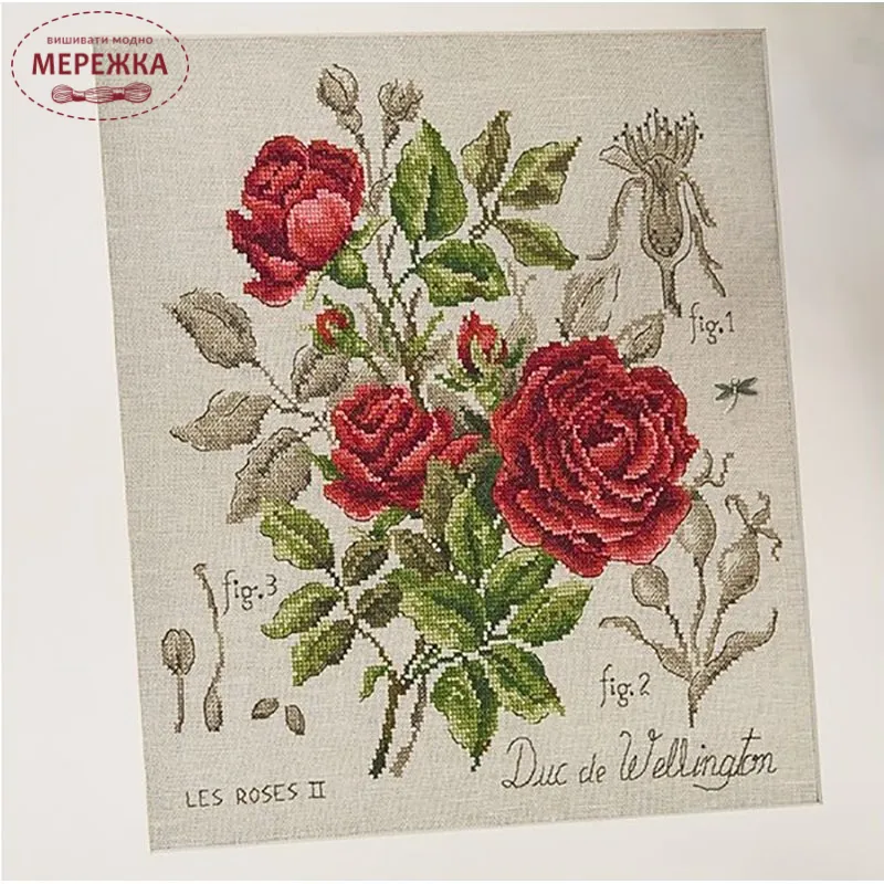 Les Brodeuses Parisiennes Схема Etude a la rose "Duc de Wellington"+тканина, пришивний шарм
