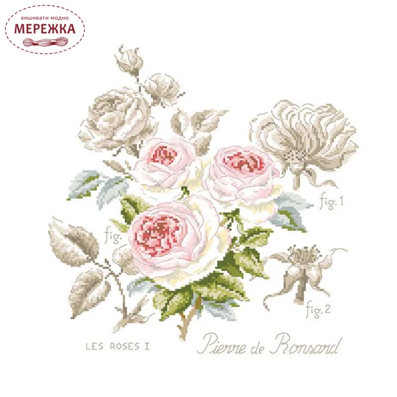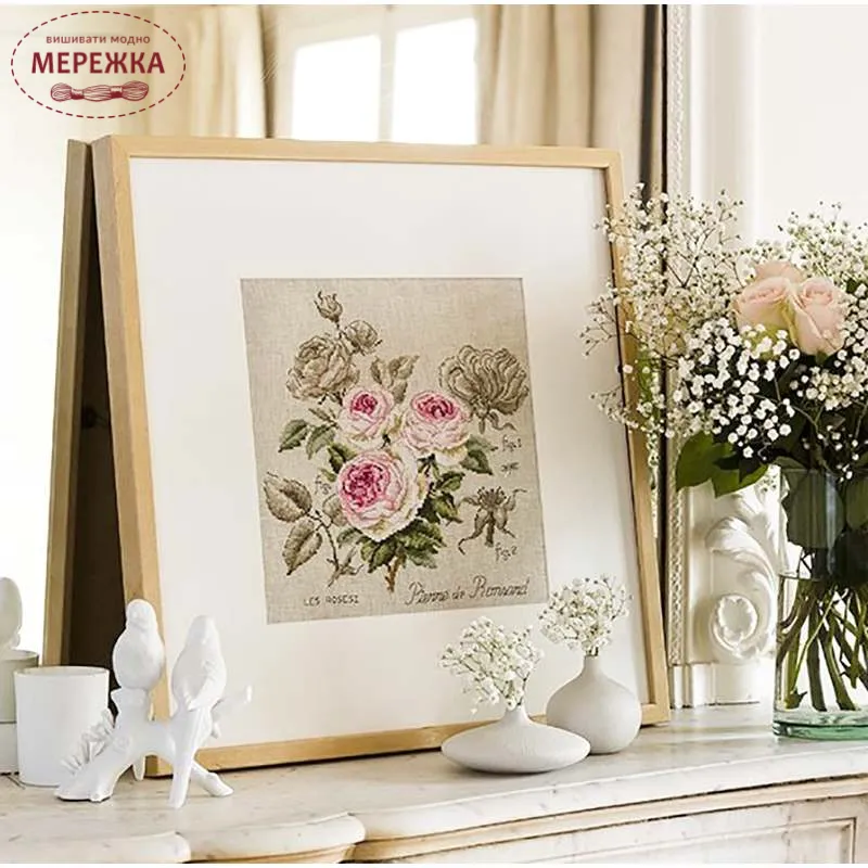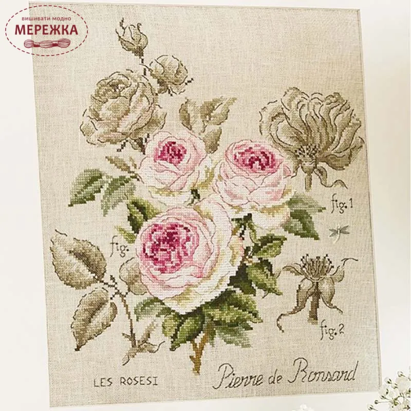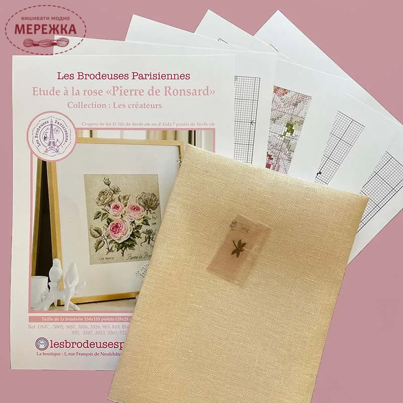 Les Brodeuses Parisiennes Схема Etude a la rose "Pierre de Ronsard"+тканина, пришивний шарм