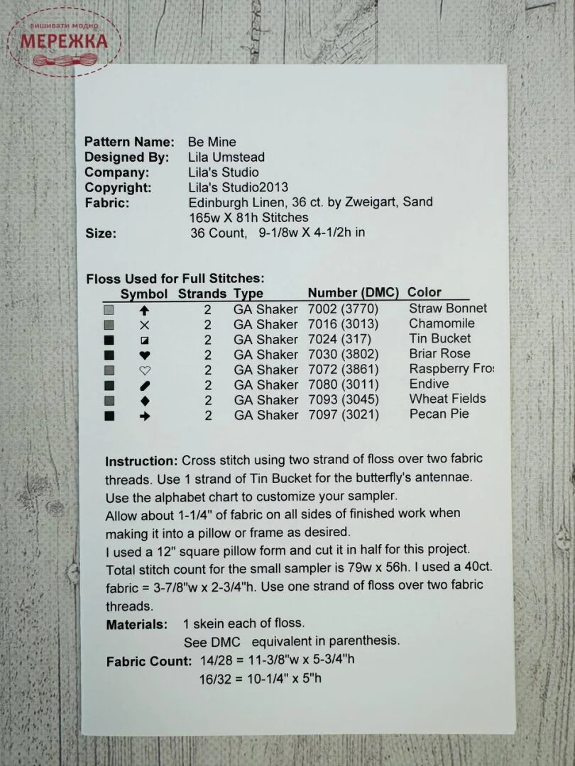 Всі необхідні матеріали (тканину та муліне) ви знайдете у нашому магазині. Якщо нитки від Weeks Dye Works, Classic Colorworks, The Thread Gatherer та The Gentle Art відсутні в нашому магазині, ми разом зможемо підібрати коректну заміну на муліне DMC.