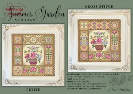 Схема для вишивання "Aurora Summer Garden Sampler (Світанковий Літній садочок Аврори)" від українського дизайнера Вікторія Попович.