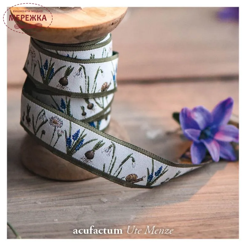 Весняні посланці: ніжні весняні квіти та цибулини ваблять весну. Ткана етикетка з любовним дизайном змушує творчі серця битися швидше. Цей делікатний мотив створила Даніела Дрешер.