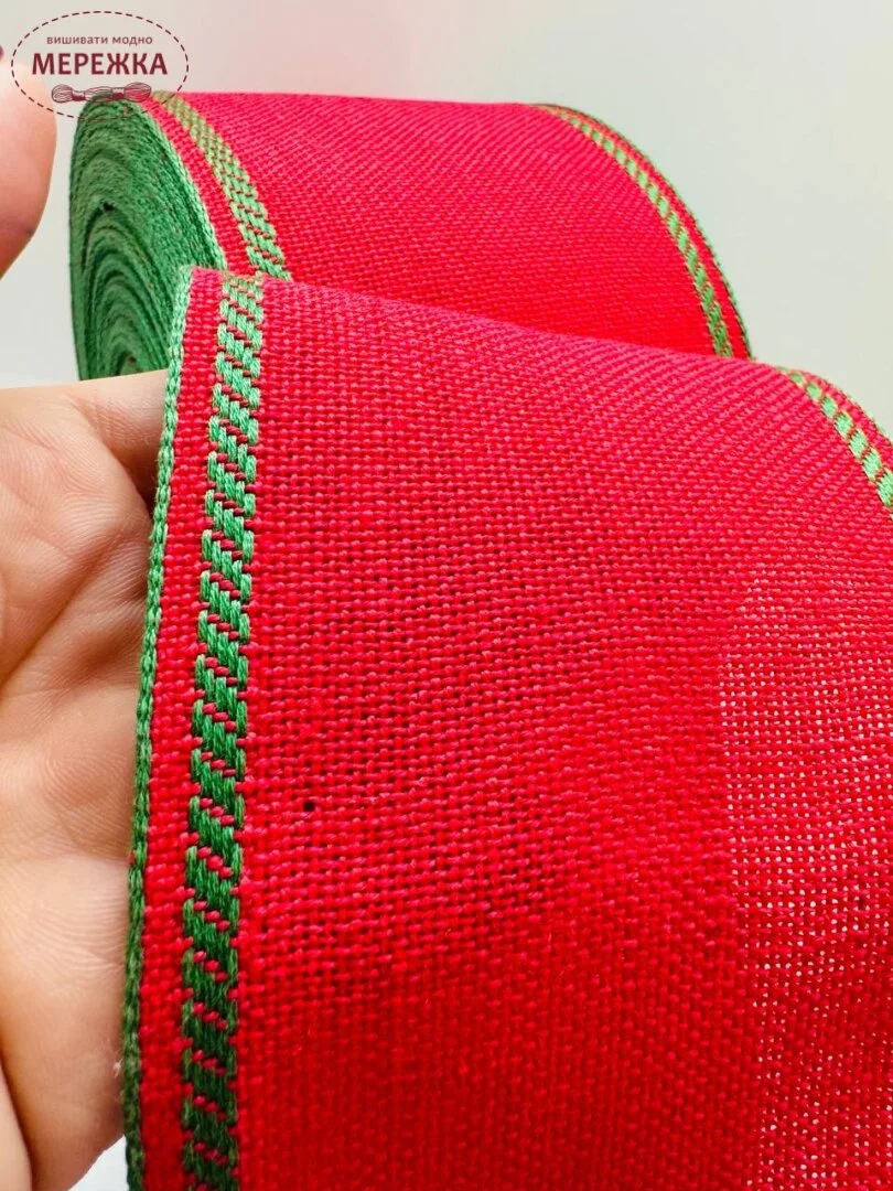 Стрічка виготовлена з рівномірного лляного полотна по якій можна вишивати будь-які дизайни.