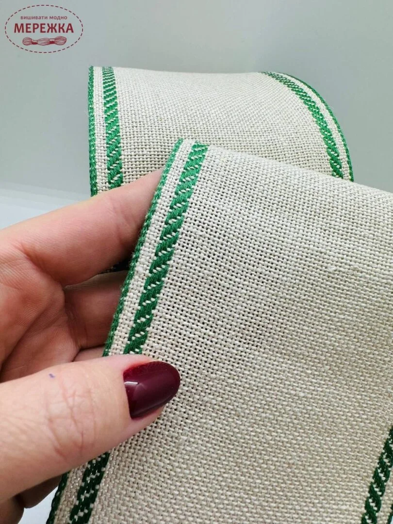 Стрічка виготовлена з рівномірного лляного полотна по якій можна вишивати будь-які дизайни.