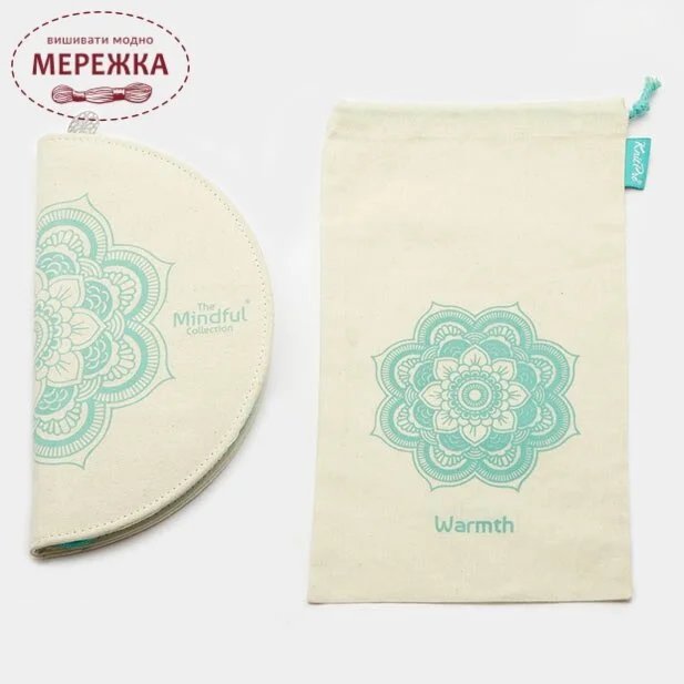 Набір знімних спиць та аксесуарів в торбинці з квітковими медитативними мотивами.