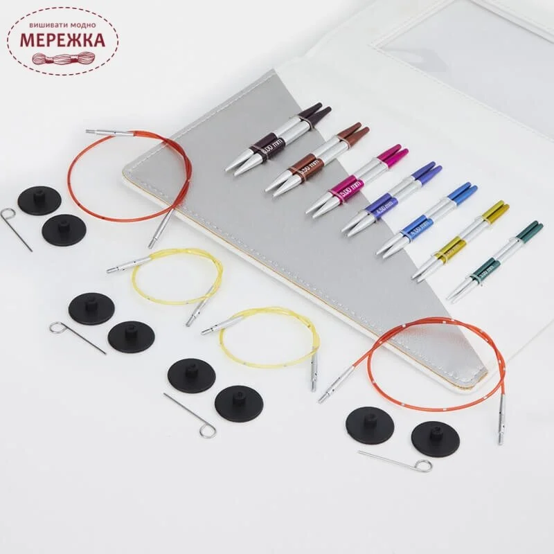 Набір знімних спиць Smartstix містить в собі вкорочені спиці популярних розмірів. Має надзвичайно красиве та зручне упакування.
