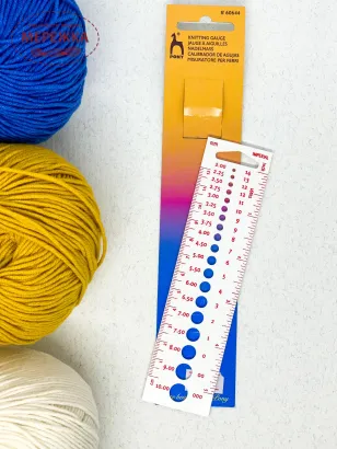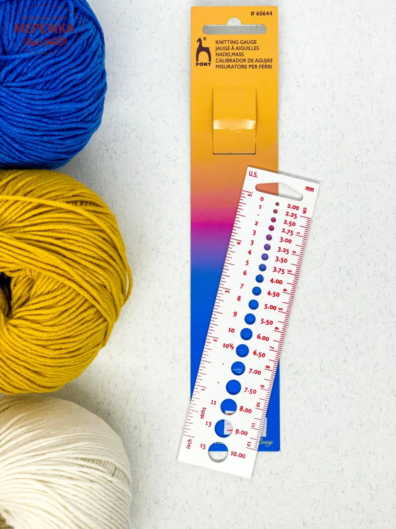 Ця лінійка не тільки виміряє діаметр спиць, але й допоможе порахувати щільність в’язаного полотна (завдяки г-подібному вирізу).