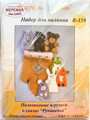 В комплекті все необхідне для пошиття пальчикових іграшок.