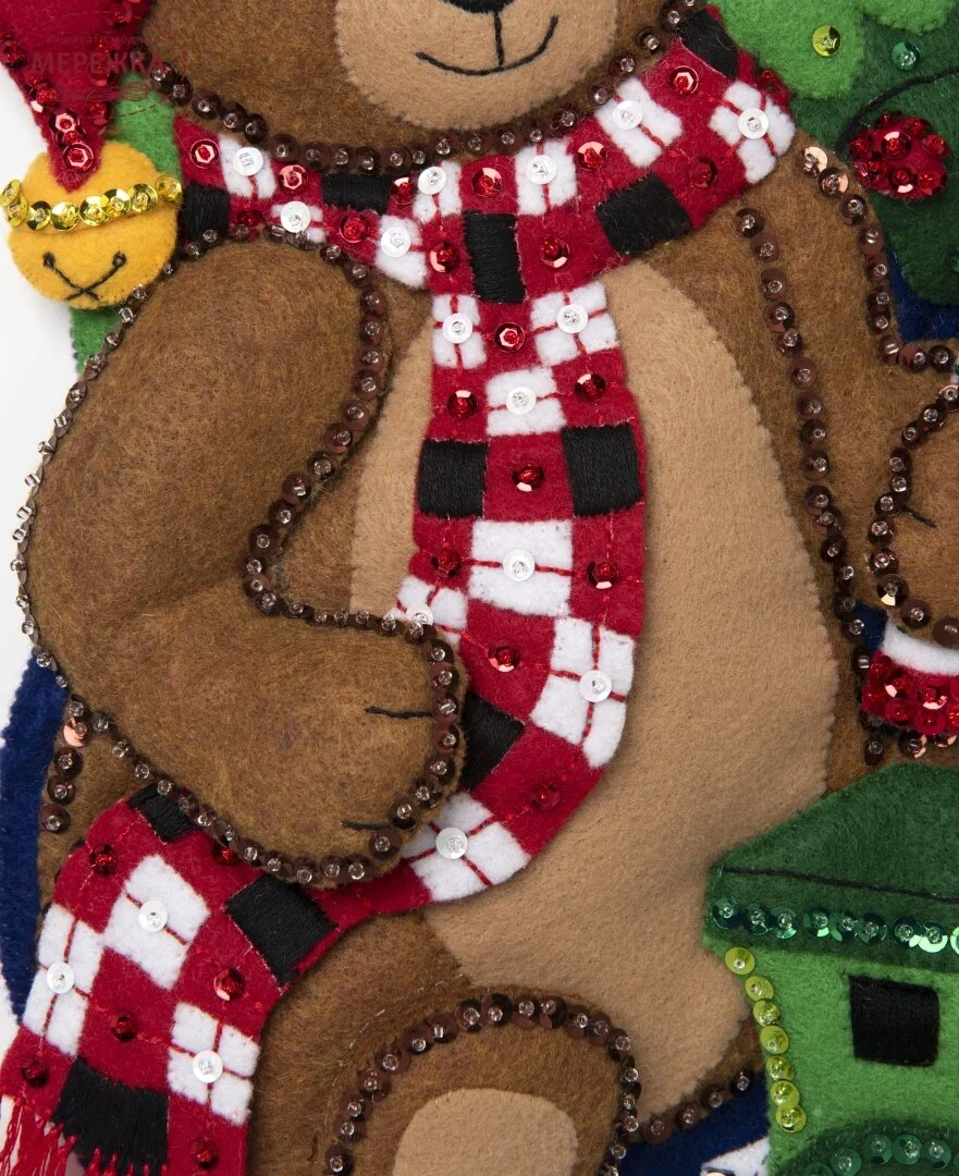 Чудова панчоха з ведмедиком та потягом прикрасить вашу домівку у період свят.