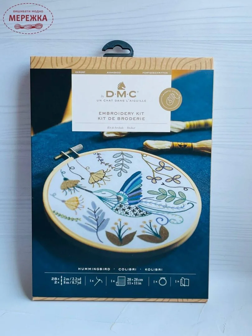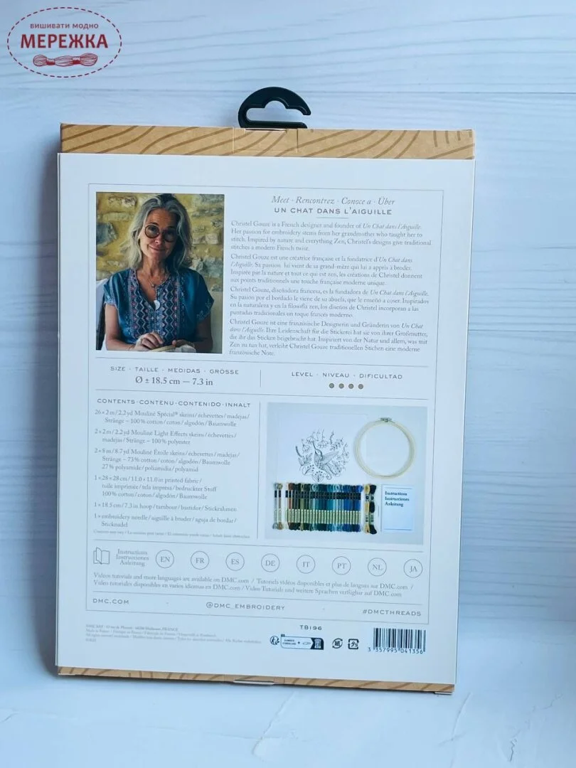 Набір для вишивання в змішаній техніці від фірми DMC укомплектований усім необхідним, до складу набору ще додатково входять п'яльця.