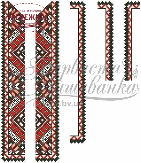 Тканина із нанесеним малюнком-схемою, на котрій дуже легко вишивати, оскільки вона має спеціальні місця для вколювання і виколювання голки, чіткий малюнок. Склад тканини: домоткане полотно (50% поліестеру, 50% котону). Тканина розкроєна на куски розмірами: 70см*150 см - 1 шт, 78см*100см - 1 шт.