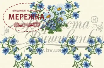 Заготовка на сірому домотканому полотні для вишивання блузи жіночої БЖ019 "Ромашки і волошки" від ТМ Барвиста Вишиванка.