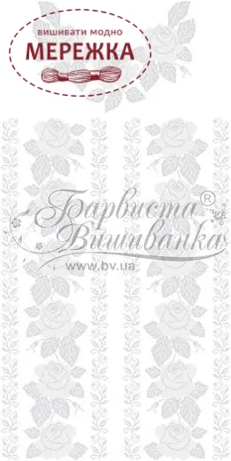 Тканина із нанесеним малюнком-схемою, на котрій дуже легко вишивати, оскільки вона має спеціальні місця для вколювання і виколювання голки, чіткий малюнок. Склад тканини: домоткане полотно (50% поліестеру, 50% котону). Тканина розкроєна на куски розмірами: 150см*75 см - 1 шт, 50см*75см - 2 шт.