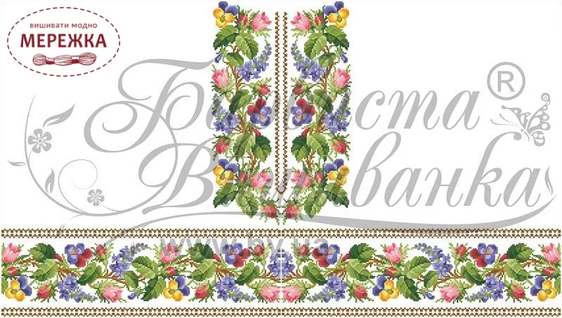 Заготовка на білому домотканому полотні для вишивання блузи жіночої БЖ117 "Колоритні братки" від ТМ Барвиста Вишиванка.