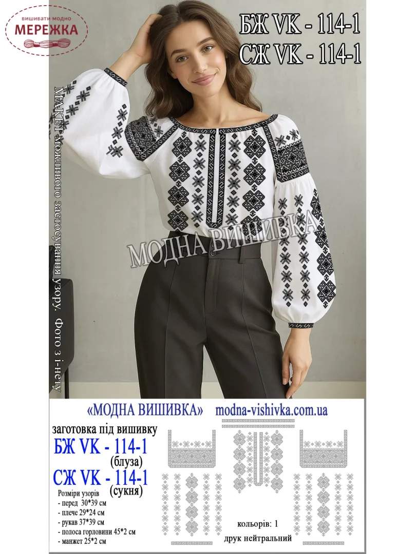 Блуза жіноча Модна Вишивка БЖ VK-114-1, білий Онікс