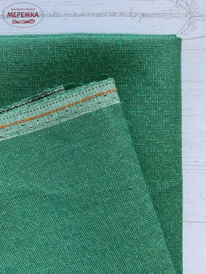 Рівномірне полотно Zweigart Newcastle 40 ct 3348/6135 Emerald Opalescent (100% льон, райдужний люрекс)