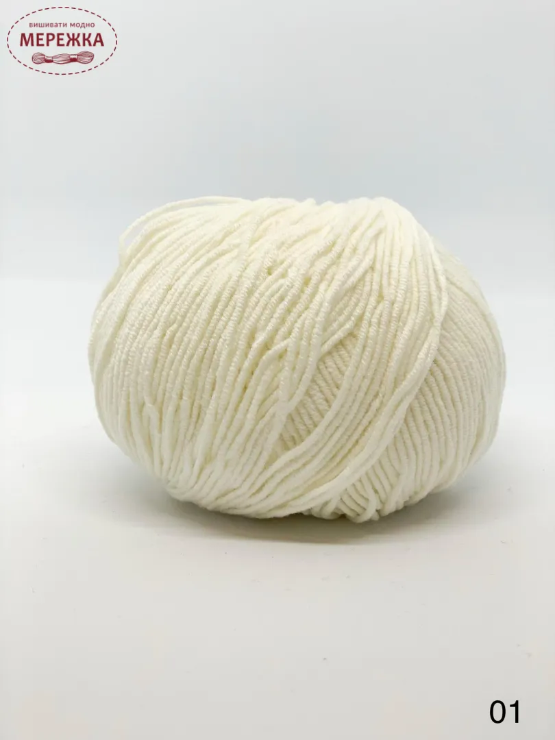 Акрил додає міцності цій пряжі та забезпечує відмінний зовнішній вигляд готових виробів.