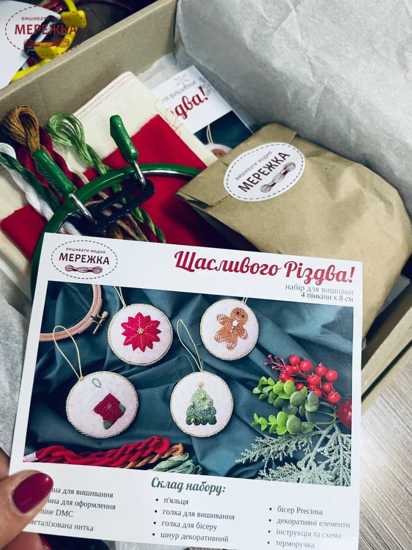 Набір для вишивання художньою гладдю новорічних іграшок Мережка Щасливого Різдва!
